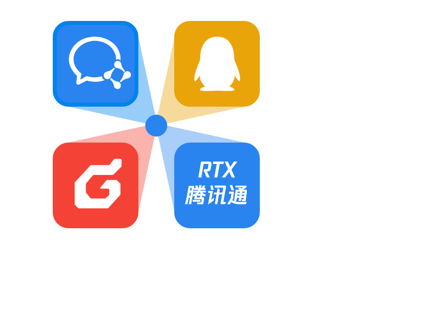 无缝对接微信、企业微信、QQ、RTX腾讯通、 Foxmail等企业应用一体化办公